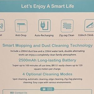 • Spot cleaning, automatic cleaning, edge cleaning, Zig-Zag planning cleaning. Easy cope with various environments.