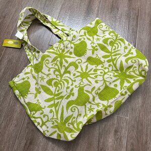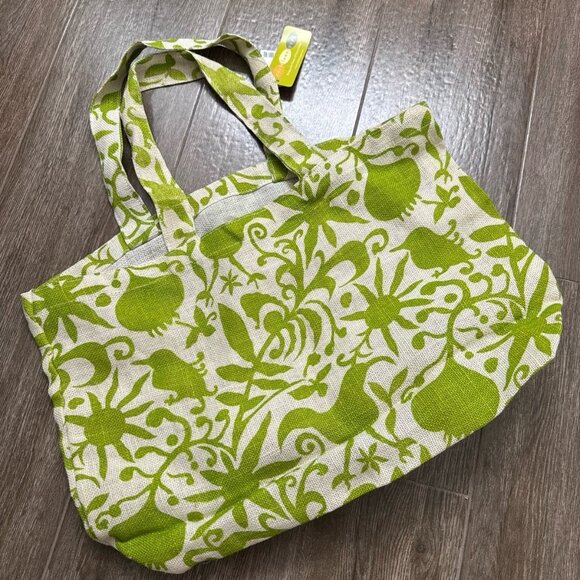 New Rock Flower Paper 100% Jute tote bag shopping purse green leafy print
