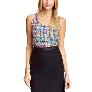 New Rock Stella & Jamie Tank Top Sz.L Multi Orange Trim Hi-Lo Scoop Neck y2k 90s