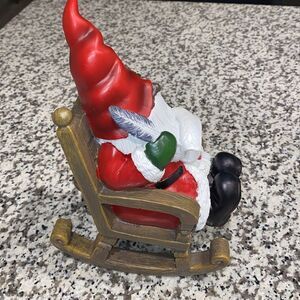 New Black Santa Gnome Rocjs in his chair while checking his list.