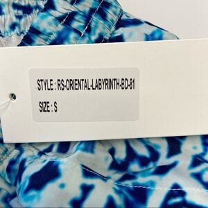 New Rococo Sand Blue Mosaic Print Swim Cover Shorts Size Small