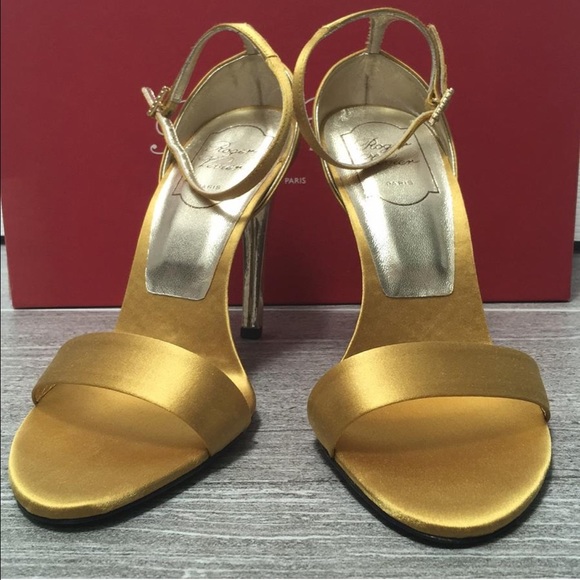 Band new Roger Vivier Sandal gold satin, size 36 1/2. Comes with box. No trades.