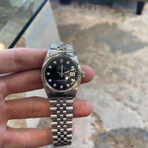 New Rolex Men's 36mm Black Dial Diamond Watch