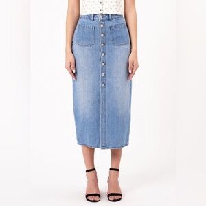 New Rollas Sailor Skirt Mid Vintage Blue Pencil Midi Button Front Slit Denim 24