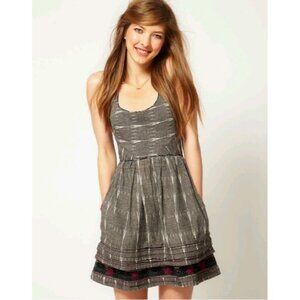 New Romantics X Free People Gray Plaid Weathervane Ikat Fit & Flare Mini Dress