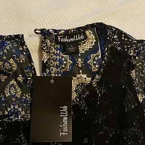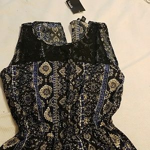 Black & Blue Abstract Lace-Accent Romper, runs a little small, tag states large but listing as a medium