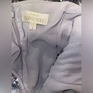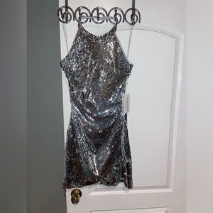 New! Ronny Kobo Vera Silver Sequin Halter Open-Back Mini Dress 🩶 Large NWT!