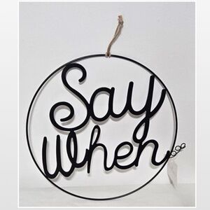 New Room & Retreat Wall Décor “Say When” Black Metal Circle Sign Bar Large