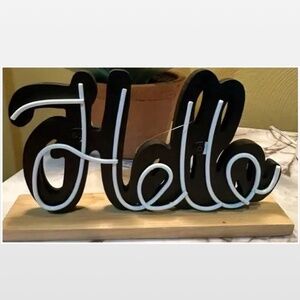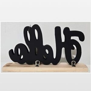 • black painted wood “Hello” spell out