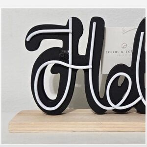 New Room & Retreat Word Art Hello Home Sign Black & White Décor Sitter Wood NWT