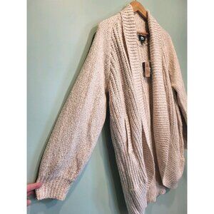 New Roots Beige Chunky Knit Mid Length Open Cocoon Cardigan Sweater Pockets