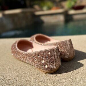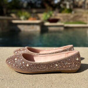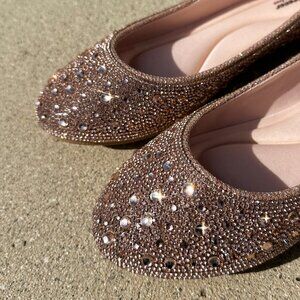 New Rose Gold Rhinestone Crystal Embellished Ballet Flat Shoes Round Toe Slip-On