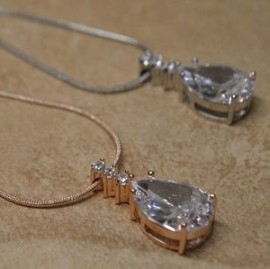 Gorgeous rose gold or silver genuine cubic zirconia crystal teardrop pendant necklace. Stunning and sparkly!