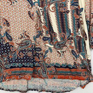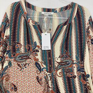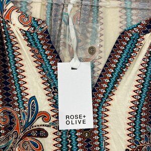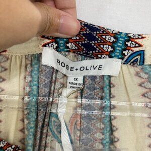 New Rose & Olive size 1X Multi Color Boho Print Stretch Button Popover Blouse