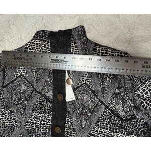New Rossi Roma Womens Large Black White Crinkle Shirt Dress Jacket Button-Front