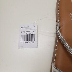 New Rouge Rhinestone Strap Bow Slide Sandals - Silver Size 8.5