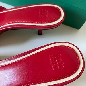 Paris meets New York. Rouje meets J.Crew. We collaborated with the Parisian brand on an exclusive capsule of romantic '90s-inspired pieces—all with a certain je ne sais quoi. The Jolie heel is about to be the prettiest pair in your rotation. Crafted from sleek red leather with a square toe, a mini gold buckle and a just-right 2" heel, this slide-on style is made for a stroll along the Seine or wherever you find yourself this summer. . .