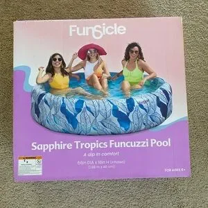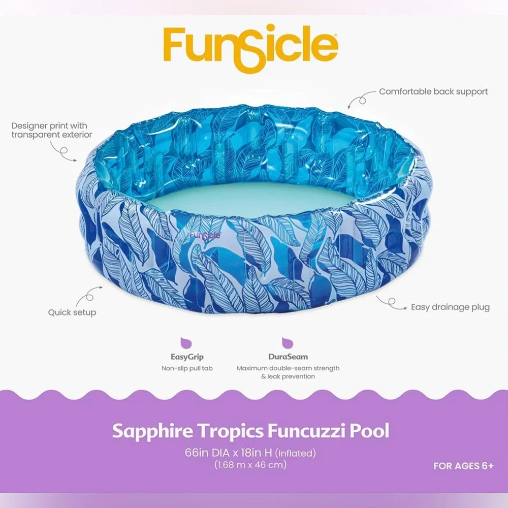 Funsicle - 66in x 18in Round Sapphire Tropics Funcuzzi Inflatable Plunge Pool, Above-Ground Pool