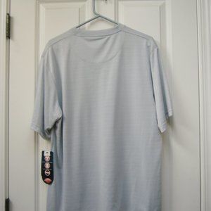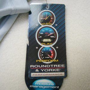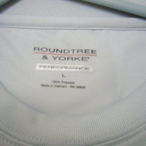 New with tags mens Roundtree & Yorke Performance shirt, short sleeve, low shrinkage, machine washable, wrinkle resistant, light gray in color, sz L, no rips tears stains.