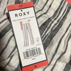 New Roxy Women's Linen Blend Cargo Pant white strips lightweight