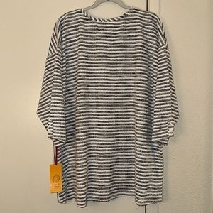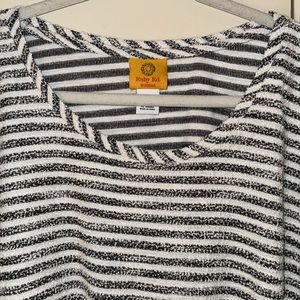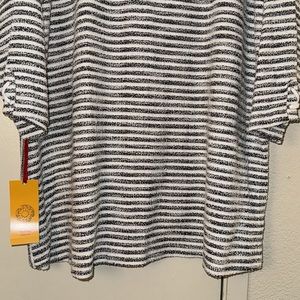 New Ruby Rd Woman Blouse. Black and White stripes in color. Ruby Rd Must Haves Blouse size 3X. 3/4 Sleeves top with cute lace up detail on the sleeve. Box. C