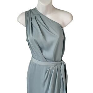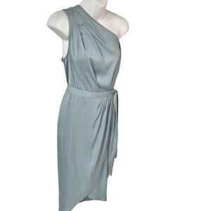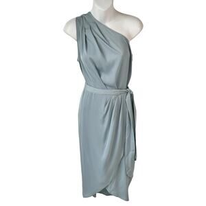 New Ruched Pale Blue Bodycon Dress Size Medium One Shoulder Wrap Satin Cocktail Wedding
