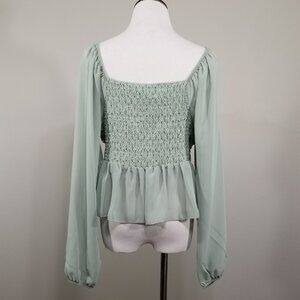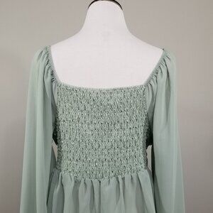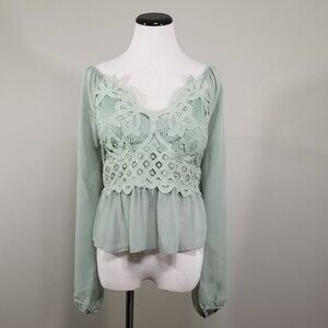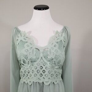 Green Lace - Flounce Long Sleeves - Shirred Elastic Back