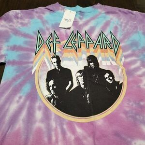 New with tags rue 21 def leppard long sleeved top size junior small. It is purple and blue 17 inches across and 20 inches long.