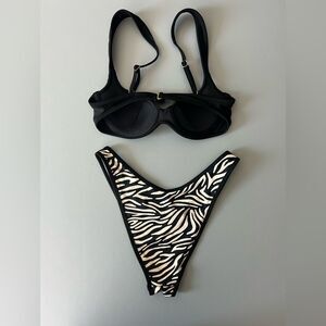 New Rumored Havana Top Black and Wynwood Bottom Black Zebra Print Bikini Set