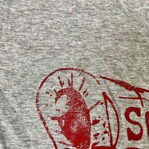 New Russell OU Oklahoma University Sooner Long Sleeve T Shirt Large. This shirt is new with tags. It has a small stain. Please see photos. Measurements in photos. Comes from a smoke free home.