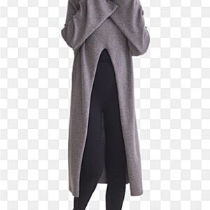 Stay cozy and stylish with this elegant gray longline sweater. Perfect for layering and adding a touch of sophistication to any outfit.