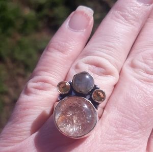 New Rutilated Quartz, Labradorite & Citrine 925 Silver Ring.