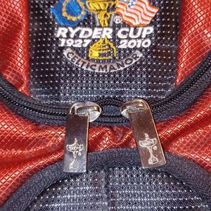 This golf accessory bag is a must-have for any fan of the Ryder Cup tournament. It features an embroidered official logo of the 2010 event at Celtic Manor. The bag is red and black in color and is designed to fit all your golfing essentials, including balls, tees, and gloves.