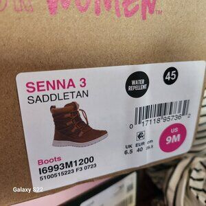 New Ryka Water Repellent Nylon Winter Boots Senna 3 in Saddle Tan. Size 9. NIB/Original box/packaging. Both boots and box are perfect. No rips/stains/scuffs/tears or peeling. Smoke free home. No odors. All offers are welcome. Thank you!