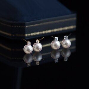 New S925 Sterling Silver Silver Needle Four Prong Set Solitaire Diamond Pearl Ea