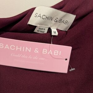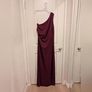 NWT SACHIN + BABI Cece Gown Deep Wine One Shoulder 4 Way Stretch Sz: 12
