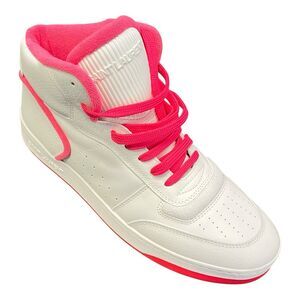 New SAINT LAURENT Leather Sneakers Mens 11 White Pink 80 High Top Lace Up Italy.