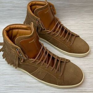 New ð ºSAINT Laurent SL/18H Suede Fringe High-Top Sneakers in Noisette/Cognac