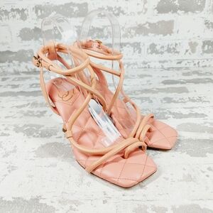 New SAM EDELMAN Maven Strappy Clay Pink Leather Heels Square Toe SANDAL W383