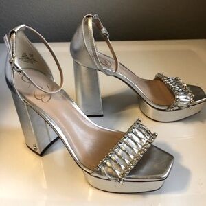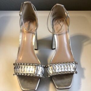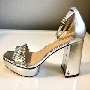 Absolutely Stunning SAM EDELMAN High Heel Platform Silver Leather & Crystal Accent Sandals