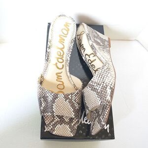New! SAM EDELMAN Tesma Snakeprint Leather Wedge Slide Sandals Square Open-toe