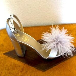 New SAM EDELMAN Yaro Silver Feather & Leather Sandals 4" Block Heel 8.5