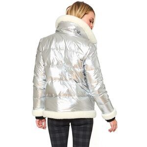 New! SANCTUARY Women's Metallic Puffer Jacket Faux Shearling Trim Size Small