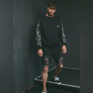 New! SER.O.YA Black Reese Sweatshirt with beaded flame detail 🖤 Large NWT’!