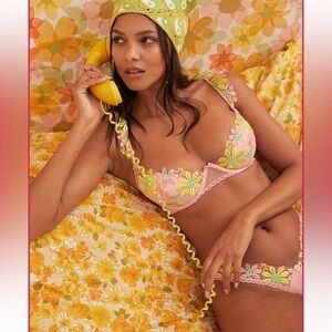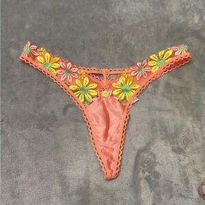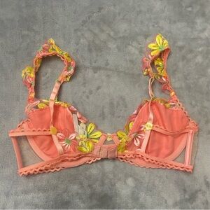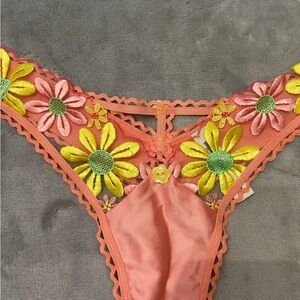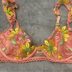 Gorgeous daisy floral embroidered underwire bra in coral and yellow with matching thong panty!New without tags!