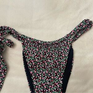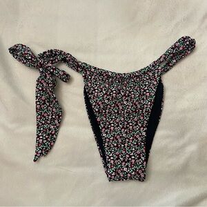 Stylish bikini bottom with floral trim. Ideal for beach outings.
