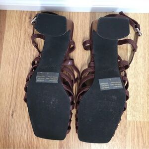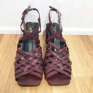 New SEYCHELLE Burgundy Braided Leather Chunky Heel Sandal Strappy Woven Size 6