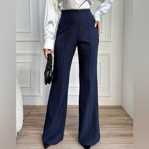 New SHEIN Navy Slim Bootcut Pintuck High Rise Trousers