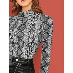 New SHEIN Privé Form-Fitting Snakeskin Print Mock Neck Top - Size Medium