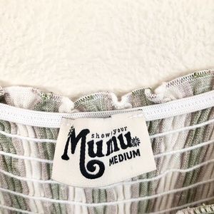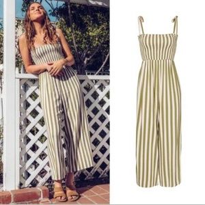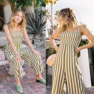 New SHOW ME YOUR MUMU Parton Bella Stripe Smocked Tie Strap Jumpsuit in Green